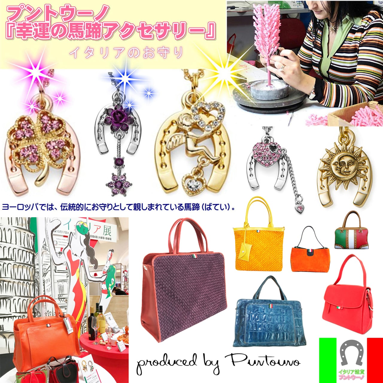 ★イタリア職人が手作業で仕上げた馬蹄に、世界中から集められたラッキーチャームを組み合わせています。